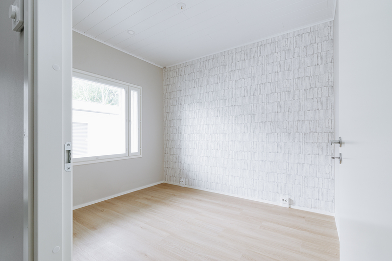Makuuhuoneen kuvaus Vinyyli tai parketti. Seinät maalattu. Makuuhuoneen kaapistot eteisalueen kaapistorivissä. Mahdollisuus asentaa makuuhuoneeseen tarvittaessa lisäkaapisto.