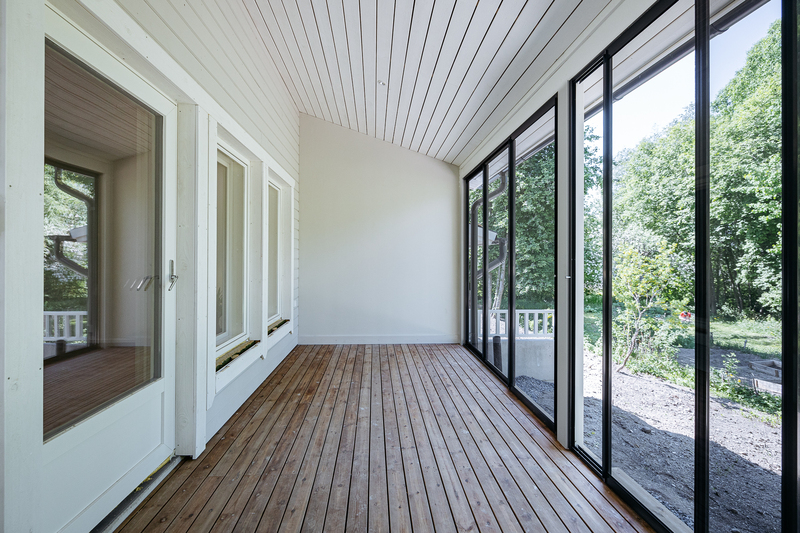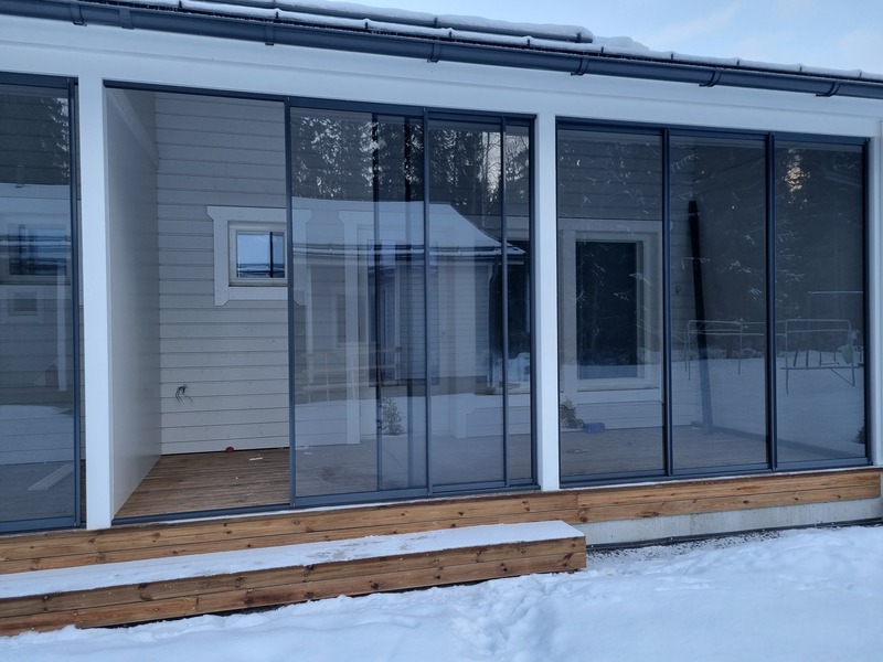 Asumismukavuutta lisää 11.4 m² lasitettu etelään suuntautuva terassi, joka toimii käytännössä toisena olohuoneena keväästä pitkälle syksyyn. Liukuovet ovat sisäpuolelta lukittavissa. Takapiha tuo lisää omaa rauhaa keskustan läheiseen asumiseen.