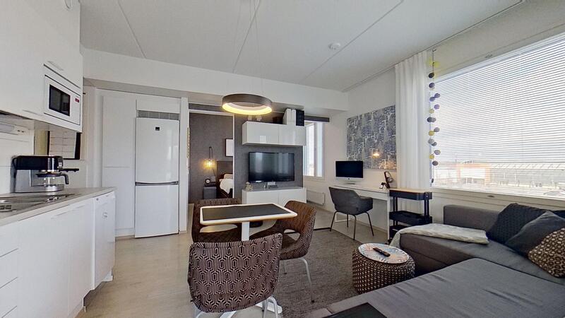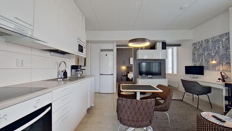 Huoneiston eteisessä on korkeat kaapistot. Kylpyhuoneessa on paikka pesutornille. Olohuone ja keittiö ovat avointa yhtenäistä tilaa, josta on käynti lasitetulle parvekkeelle. Parvekkeen maisemat suuntautuvat pääosin itään kaupungin suuntaan sekä etelään. Keittiön integroitu mikro sisältyy kauppaan.