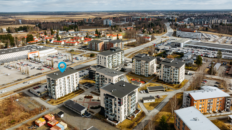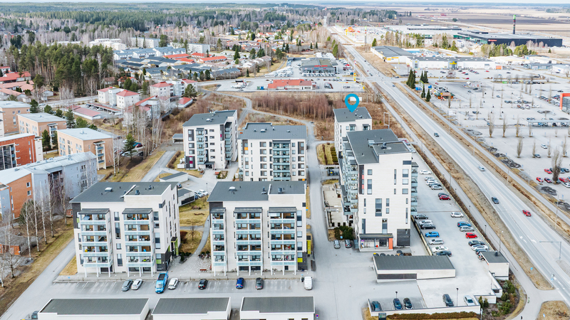 Tehokkaalla pohjaratkaisulla varustettu hissitalon kulmahuoneisto, jossa ikkunat suuntautuvat kahteen ilmansuuntaan. Asunto soveltuu mainiosti myös senioriasukkaalle. Naapurirakennuksessa sijaitsee palvelukoti.