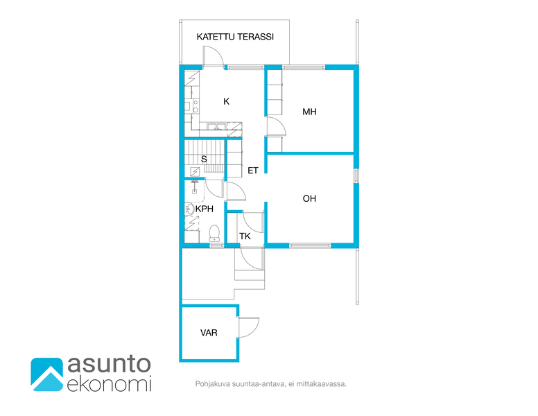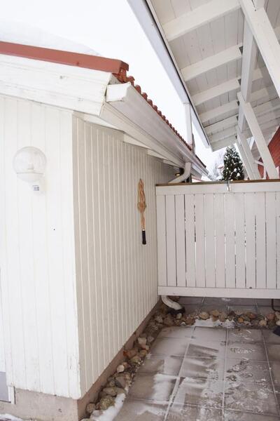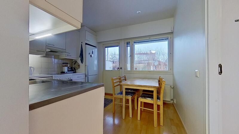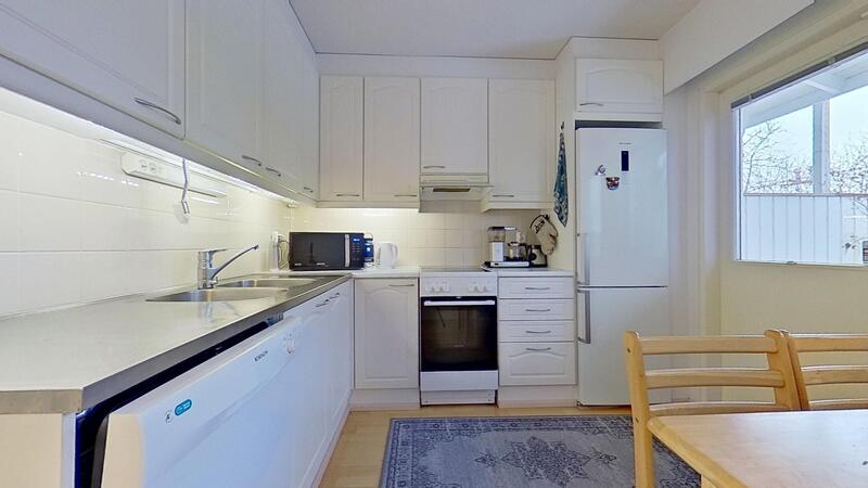 Keittiössä on hyvin säilytys- ja työskentelytilaa sekä ajanmukainen varustelu, joka palvelee sujuvaa arkea. Keittiöstä on käynti suojaisalle katetulle takapihan terassille, joka tuo mukavasti lisätilaa etenkin kesäkaudella.
