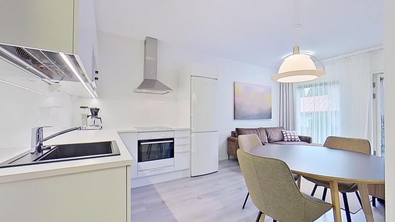 | Keittiön varustelu | laadukas keittiö, jossa kaapistot hidastimin. Komposiittiallas. Kalusteisiin integroitu astianpesukone. Välitilassa led-valot ja katossa kiinteä led-valaistus. Varustus: jääkaappi/pakastin,liesituuletin. Liesi: induktio. Lattia:vinyyli. Seinät: maalattu |