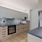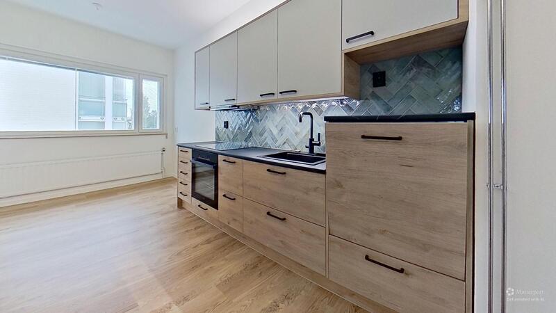| Keittiön varustelu | Liesikuvussa aktiivihiilisuodattimet. Varustus: jääkaappi/pakastin, astianpesukone. Liesi: induktio, erillisuuni. Lattia: vinyylikorkki. Seinät: kaakeli, maalattu. |