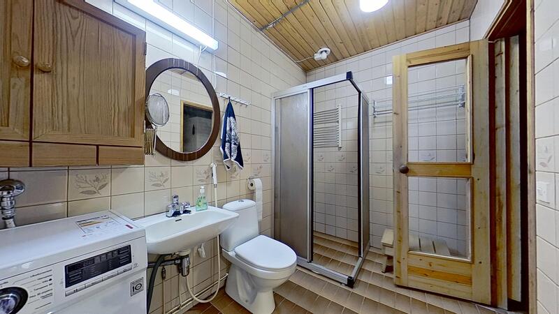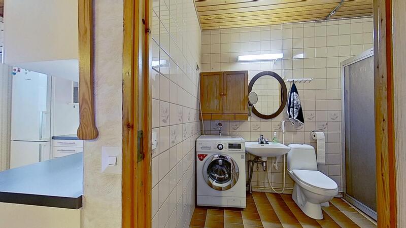 | Kylpyhuoneen kuvaus | Peili, lavuaari, wc-istuin, suihku, suihkukaappi, pesukoneliitäntä. Alkuperäinen. |
