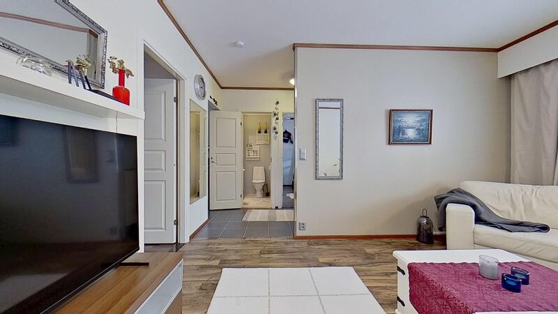Huoneistossa on kaksi makuuhuonetta, joissa molemmissa on korkeat kaapistot. Lisäksi tuulikaapissa on korkeat kaapistot. Asunnon tilaratkaisu on toimiva ja selkeä. Erillinen olohuone on tilava ja helposti kalustettava. Huoneiston keittiö on remontoitu vuonna 2014. Keittiöstä on suora kulku takapihan suojaisalle laajalle katetulle terassille. Myös kylpyhuone ja sauna on remontoitu vuonna 2014. Huoneiston erillinen wc lisää arjen mukavuutta.