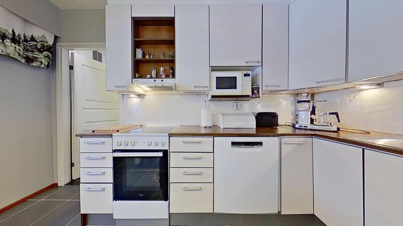 Keittiön varustelu Keittiö uusittu vuonna 2012, jolloin osa yläkaapistojen rungoista jätetty hyväkuntoisina, mutta muutoin myös kaikki rungotkin uusittu sekä, ovet, vetimet, tasot, allas, hana ja välitila. Astianpesukone ja keraaminen liesi uusittu 2023.