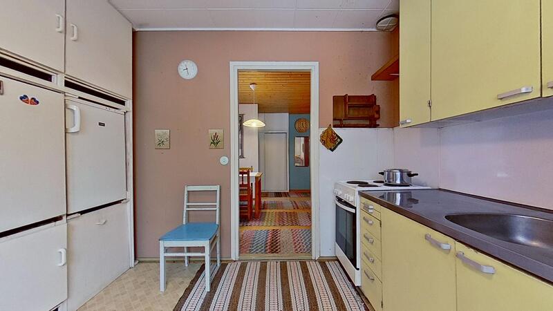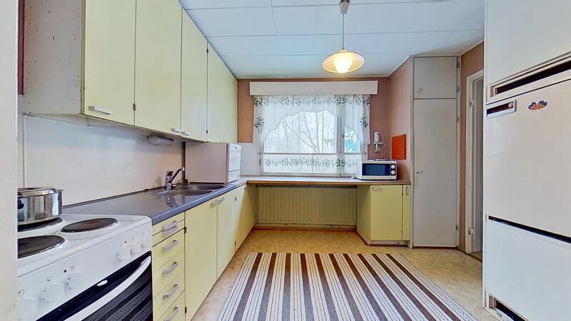 Keittiön varustelu Pieni jääkaappi, pakastin ja astianpesukone, sähköliesi. Myyjä ei takaa kodinkoneiden toimintavarmuutta. Suurin osa kodinkoneista on iäkkäitä. Sähköliesi on uusittu vuonna 2015.