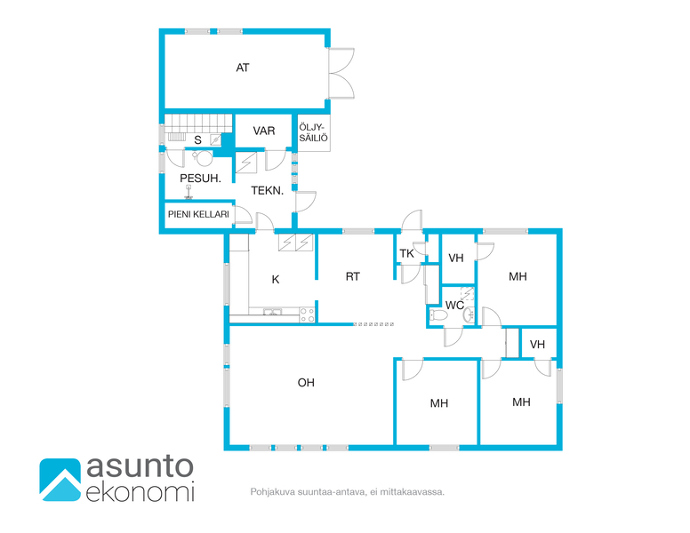 Huoneistoselitelmä 4h, k, rt, 2x vh, wc, kph, s, autotalli
