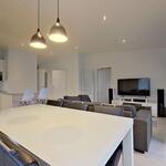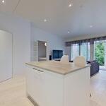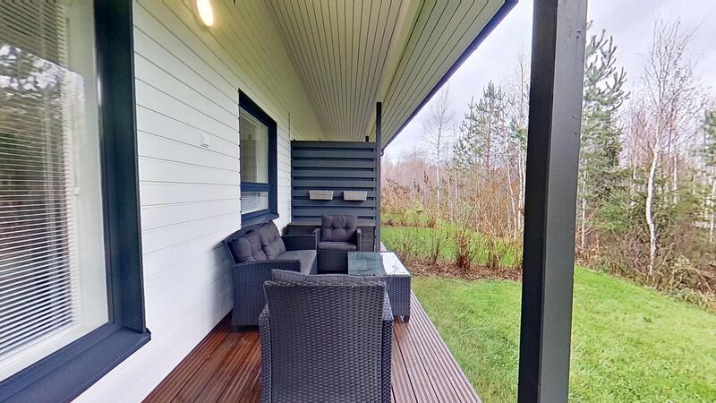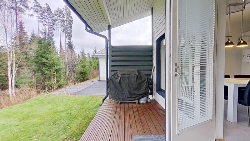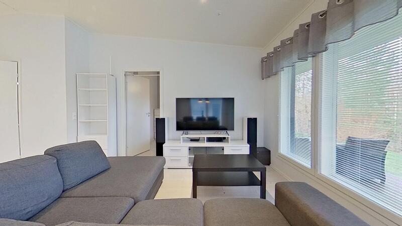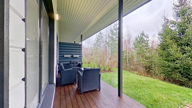 Tyylikäs ja hyvin varusteltu päätyhuoneisto metsään rajoittuvalla takapihalla.