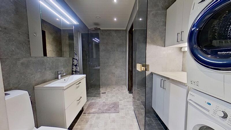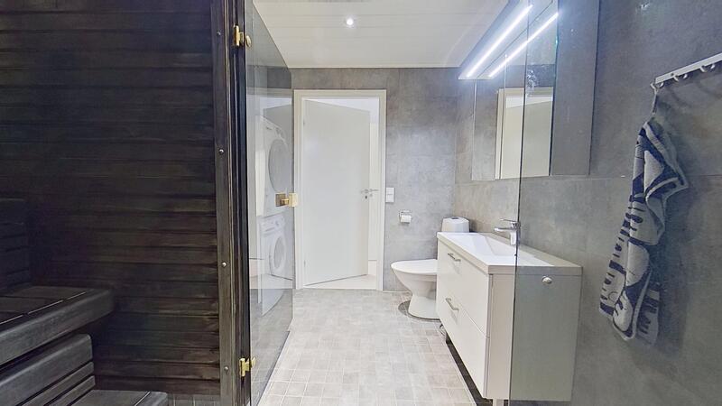 Tyylikäs kylpyhuone on varustettu wc-istuimella, lattialämmityksellä, suihkuseinällä ja laadukkailla kalusteilla. Kylpyhuoneessa on hyvin tilaa myös kodinhoidolle. Oma sauna kutsuu rentoutumaan päivän päätteeksi. Lisäksi erillinen WC bidee-suihkulla lisää arjen mukavuutta.