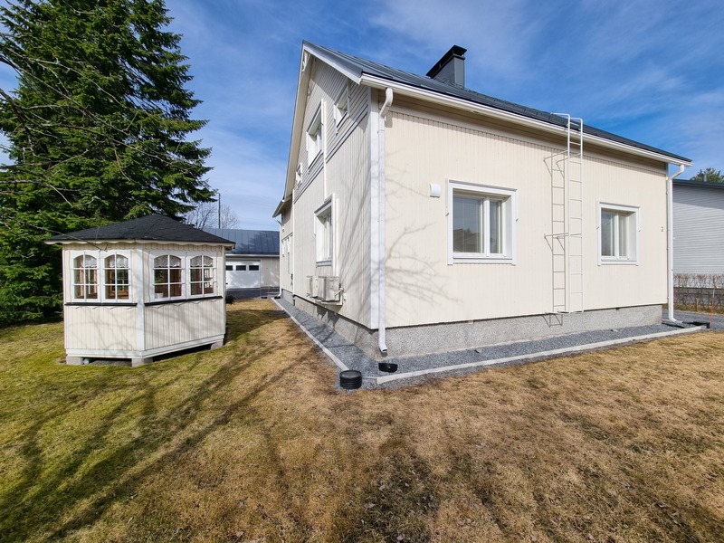 | Tehdyt remontit | 1987: Peruskorjaus ja laajennus. 2002: Ulkorakennuksen laajennus. 2003: Taloon uusi laudoitus. 2004: Kylpyhuoneremontti 2004: Huvimajan pystytys. 2016: Keittiöremontti (Tasot, kaappien ovet, tiskipöytä, induktioliesi, vitriini). 2017: Wc-istuimen uusiminen. 2018: Alakerran lattioiden hionta ja lakkaus. 2019: Kellarin kunnostus. 2019: Kylpyhuoneen kalusteiden uusiminen (Lavuaari, kaapit). 2019: Uusi ilmalämpöpumppu. 2021: Talon katon maalaus. 2022: Alakerran sähköpattereiden vaihto. 2022: Ulkorakennuksen rappusten uusiminen. 2022: Ulkosaunan kiukaan uusiminen 2024: Laaja alapohjaremontti, jossa alkuperäisessä rakennusosassa alapohja on kunnostettu, vanha pohjalaudoitus on purettu ja asennettu tuulensuojalevyt. Myös lämmöneristeet on uusittu. Maapohja ryömintätilassa on vaihdettu kapillaarikatkosepeliin. 2024: liitytty alapohjaremontin yhteydessä kaupungin hulevesijärjestelmään, asennettu salaojat rakennuksen ympärille, uusi sadevesijärjestelmä ja uudet routaeristeet. Korkeuseron vuoksi asennettiin pumppukaivo pumppaamaan salaojien vedet pois. Sokkeliin asennettiin patolevyt ja listat. 2024: asennettu yläkerran ilmalämpöpumppu ja asennettu Northvent suuntaa vaihtava ilmanvaihtolaite lämmöntalteenotolla keittiöön/olohuoneeseen. 2024: Uusittu ulkovalaistusta ja asennettu kauppaan kuuluva sähköauton latausasema. |